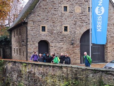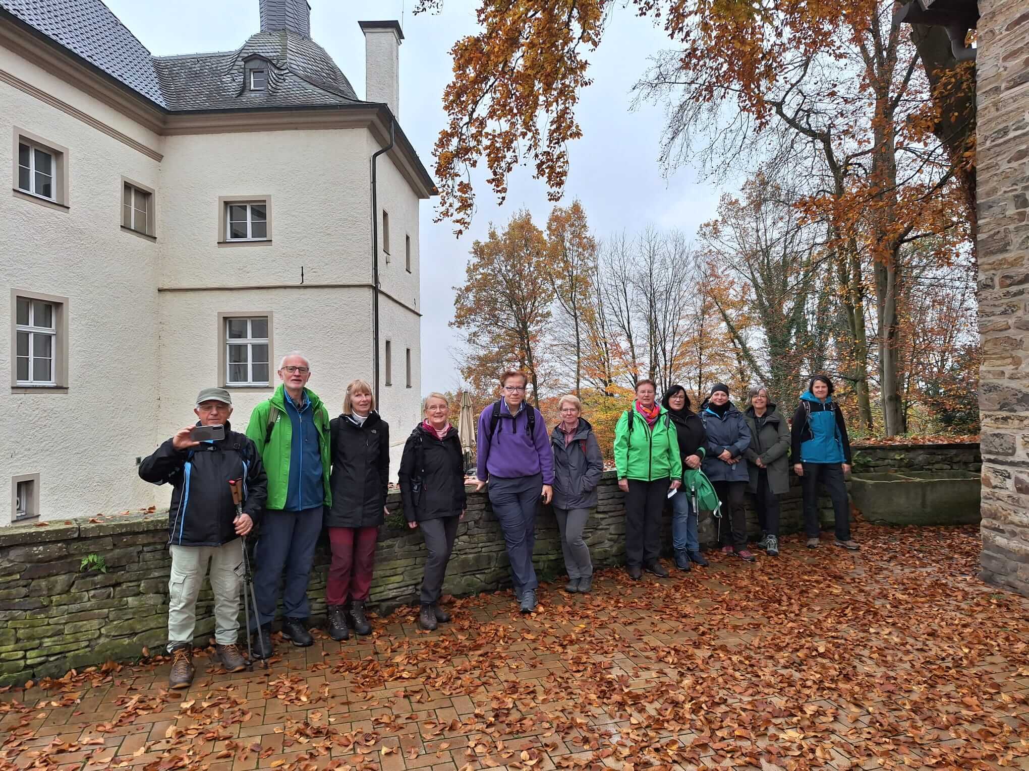 Nachdem die Wanderung „Von Schloss zu Burg“ in der Tageszeitung bereits angekündigt worden war, erhielt der SGV Letmathe die Nachricht, dass die geplante Rückfahrt aus Altena nach Hohenlimburg mit der Bahn am 15.10.2023 wegen Gleisarbeiten nicht möglich sein würde. Also wurde das Programm kurzfristig umgestellt: Wandern auf dem Nahmer-Rundwanderweg hieß die Lösung und elf Wanderfreund/innen starteten um 9 Uhr am Bahnhof Hohenlimburg. Auf einer etwa 12 km langen Route ging es hinauf zum Schloss und weiter über die Höhen des Nahmertals mit super Aussichten auf die Nahmer, auf Oege und auf Hohenlimburg. Von dem angekündigten Regen war zunächst nichts zu spüren und so war die Wandergruppe guten Mutes, trockenen Fußes bis ins Wanderheim zu gelangen. Aber die letzten 3 km enttäuschten diese Hoffnung gar heftig. Plötzlich begann der Regen und sorgte dafür, dass der mitgeführte Regenschutz doch noch unbedingt zum Einsatz kommen musste. Gleichwohl meldeten die Teilnehmenden am Ende zurück, eine wirklich gute Alternative zur ausgefallenen Wanderung nach Altena erlebt zu haben.