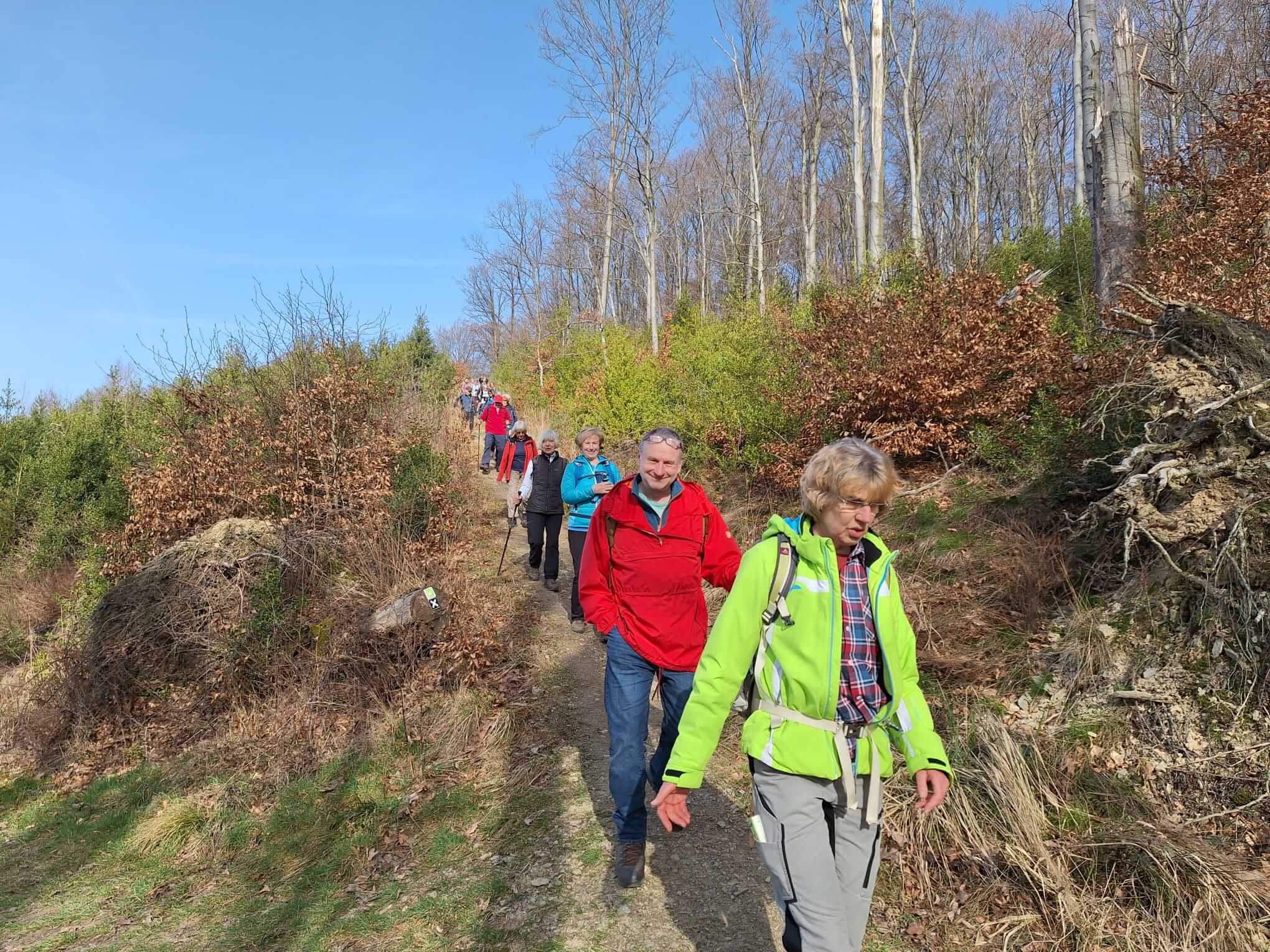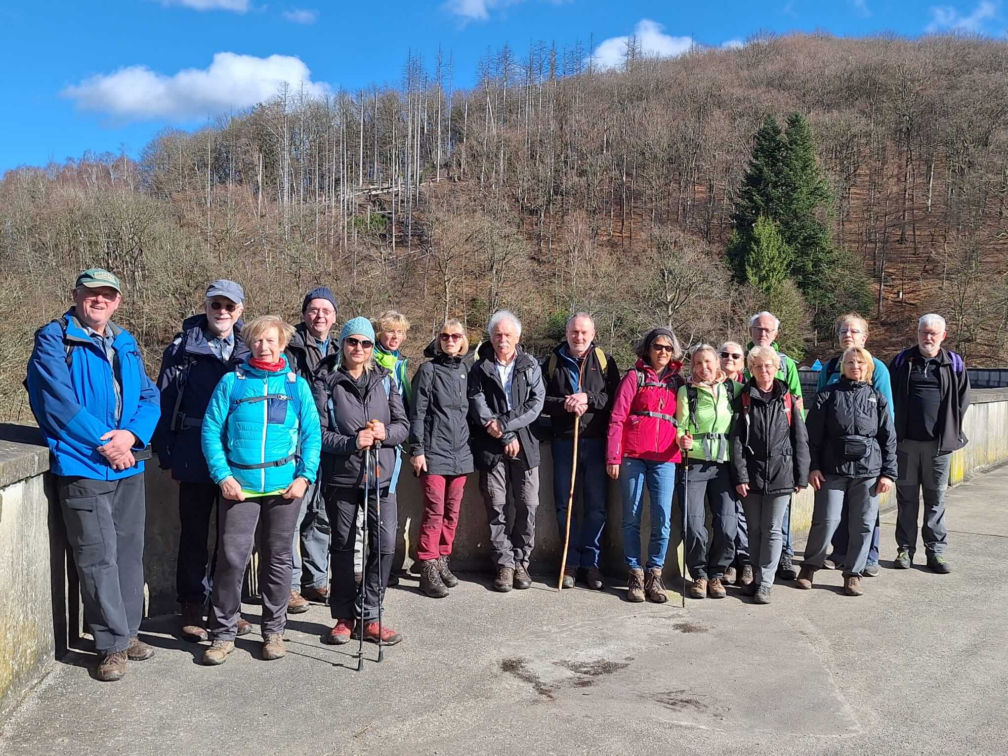Wenn es immer heißt, mit dem SGV lerne man wandernd seine engere Umgebung in besonderer Weise kennen, so war das heute ein äußerst reizvolles und zutreffendes Beispiel. Von den 18 Teilnehmenden der heutigen Tour „direkt vor der Haustür“ waren die Wanderwege für mindestens 16 Wandernde ziemliches Neuland. Bei besten Bedingungen und einer hervorragenden Fernsicht ging es vom Startpunkt Dannhöfer über Routen mit unterschiedlichsten Markierungen bis fast nach Kespern und über Vosswinkel zum Fischgut und Stock in der Bräke zurück zum Ausgangspunkt. Immer wieder war das Erstaunen wahrnehmbar, über die vereinzelten Häuser, Höfe und Weiler die Richtung Hegenscheid, Lössel, Obergrüne und wo auch immer, erkennbar waren. Am Ende zeigten sich die Beteiligten insgesamt begeistert von diesem tollen neuen Wandervorschlag und seiner Umsetzung.